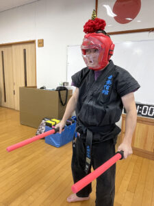 例年通り、師匠が鬼になって子ども門下生が豆をぶつけます。